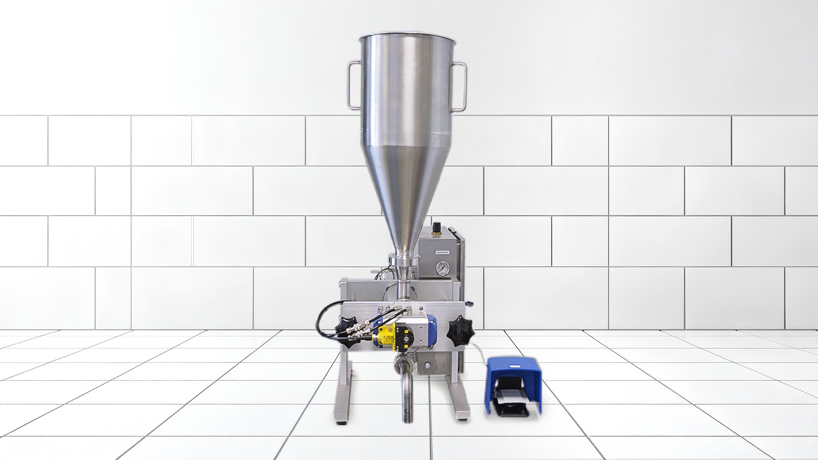 Unifill Tischabfüllmaschine für die Becherabfüllung für Speiseeis und Flüssigprodukten.